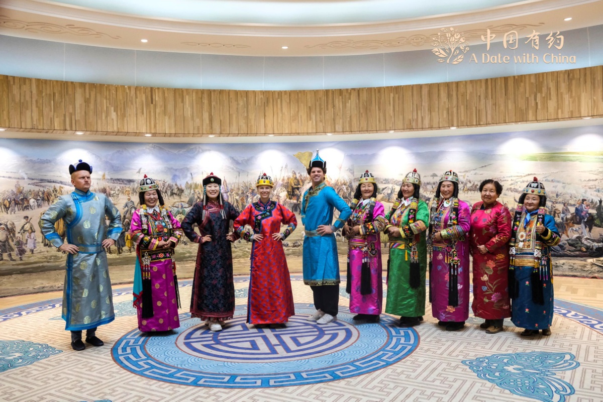 听完讲解后,西海非物质文化遗产交流中心民间艺人们身穿华丽的民族服饰,伴随着欢快的萨吾尔登舞,为采访团成员上演了一场精彩绝伦的视觉盛宴。中国日报美籍专家Elliot McGowen表示,开始还觉得奇怪,然而在这里了解了蒙古族在新疆的历史后,大为震撼。在这几天新疆的采访中,他看到除了维吾尔族以外的其他民族,Elliot 表示:“其他地方很少有这样丰富的多样性,看到这里各族人民如此团结、携手同行,令我非常感动。“