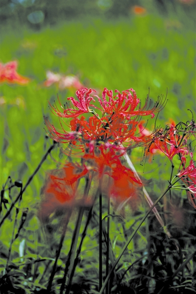 我觉得“彼岸”是相对于花和叶而言。说它特殊,是因为它的名字特殊,它的生长状态特殊,它的花语也很特殊。我理解你——彼岸花,理解你潜藏的身姿,理解你不为人知的苦衷,理解你的执着,理解你的忧伤,理解你火山般迸发的热情。你不再是只在彼岸开花,而是在我眼里与众不同。其实人世间何处不是彼岸?我们总在向往着对面的风景,以为幸福在遥远之境。农人向往城市,市民渴慕田园;少年急待成熟,老者追忆青春。待真的抵达了所谓的彼岸,才发现它又成了新的此岸,前方依然有着可望难即的风景。如此循环往复,直至人生的尽头。