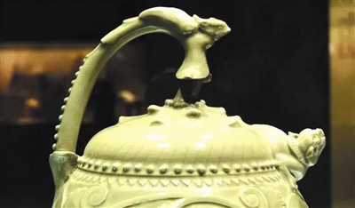 唐代青瓷作为一种表面施有青色釉的瓷器,青瓷以瓷质细腻、线条明快流畅、造型端庄浑朴、色泽纯洁而斑斓著称于世。1968年,陕西省彬县在对一段废旧的城墙进行维修改造时,一件不太引人注目的瓷壶在古城墙下被挖出。将这个不起眼的瓷壶清洗干净后,在场的古陶瓷专家对这件造型别致、装饰精细的古瓷壶感到十分惊讶。