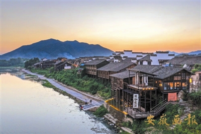 古时,这里是十分繁华的水路码头,沿江一排约一公里余,是全国十大即将消失的建筑奇观“江南千条腿”,也是安徽唯一一处吊脚楼。隔河相望,青瓦木屋沿河排成了长长的一片,恰似一张“乌排”顺河而下。夜间屋里灯明,倒影于河水之中,状若“万家灯火”。