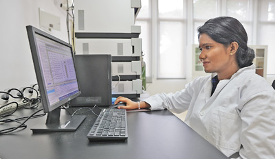 中斯水中心工作人员正在观测水样本数据。