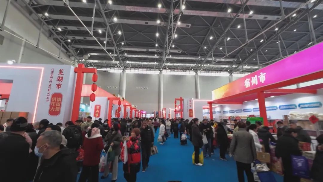 我现在是在合肥滨湖会展中心举办的2025安徽供销大集的现场,在这里,全国40多个展团和近千家境内外优质年货企业,为我们带来了上万种全品类年货,让市民朋友们可以一站式购齐新春年礼。