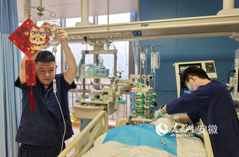 在安徽医科大学第二附属医院7号楼的重症医学科二科室的病房里,与万家欢度春节的热烈氛围相比,这里却呈现出另一番景象:专业护师在走廊忙碌地来回小跑、主任医师一刻不停地巡视着各个床位、患者家属在隔离门外焦急地踱步、躺在病床上的危重症患者期望着重获健康……