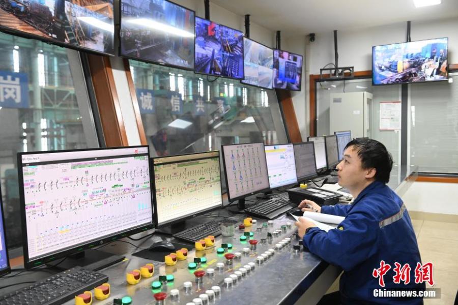 资料图:位于安徽省马鞍山市的中国宝武马钢特钢公司生产线正在进行智能化生产。中新社记者 韩苏原 摄