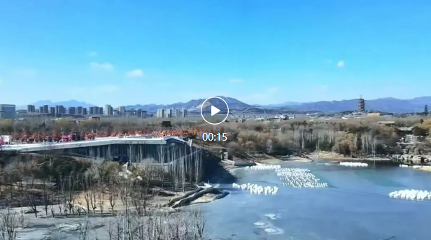高铁列车驶过北京园博园,凝望窗外的风景,冰封的水面与蓝天相映成趣,远处的永定塔清晰可见,一幅宁静壮美的冬日画卷在眼前徐徐展开。