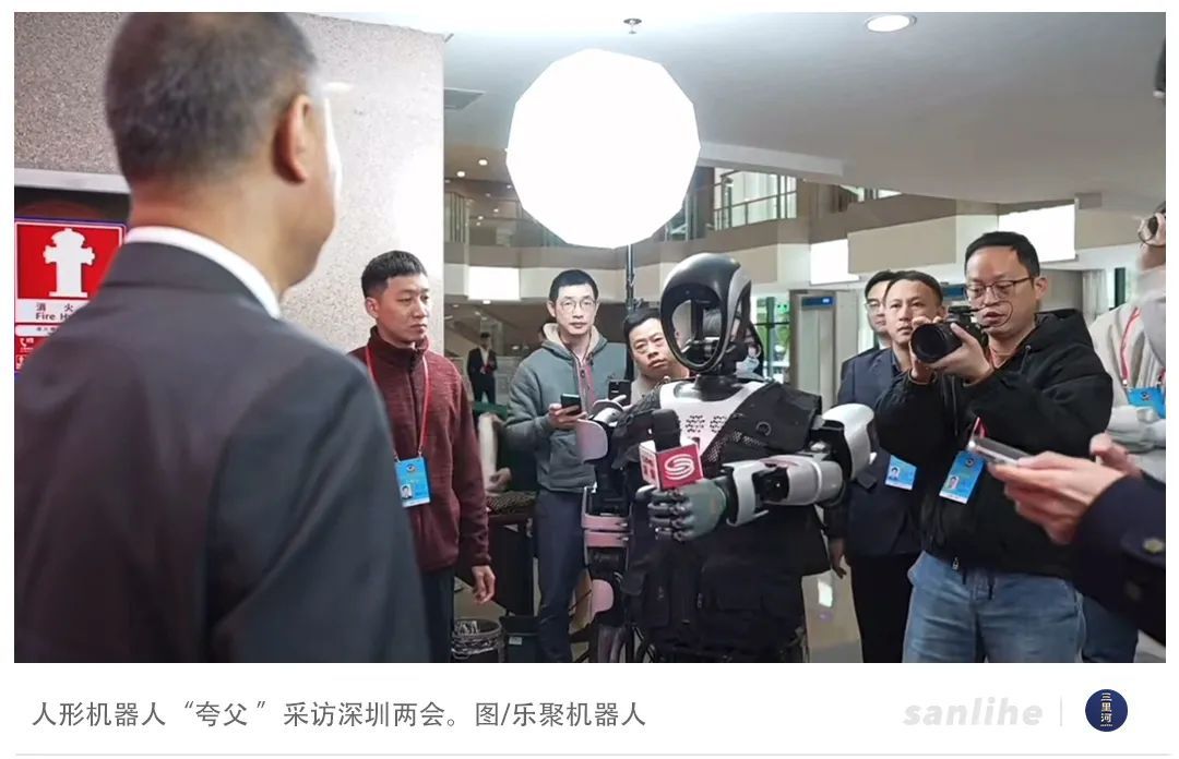 深圳两会期间,“夸父”机器人变身“记者搭子”。