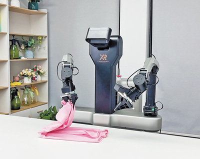 在深圳自变量机器人科技公司,具身智能通用大模型为机器人装上了聪明的“大脑”,成功解决了这一难题。只见一台双臂机器人动作灵活,实时判断衣物形变,智能调整力度,不一会儿就把散落的衣服折叠整齐。