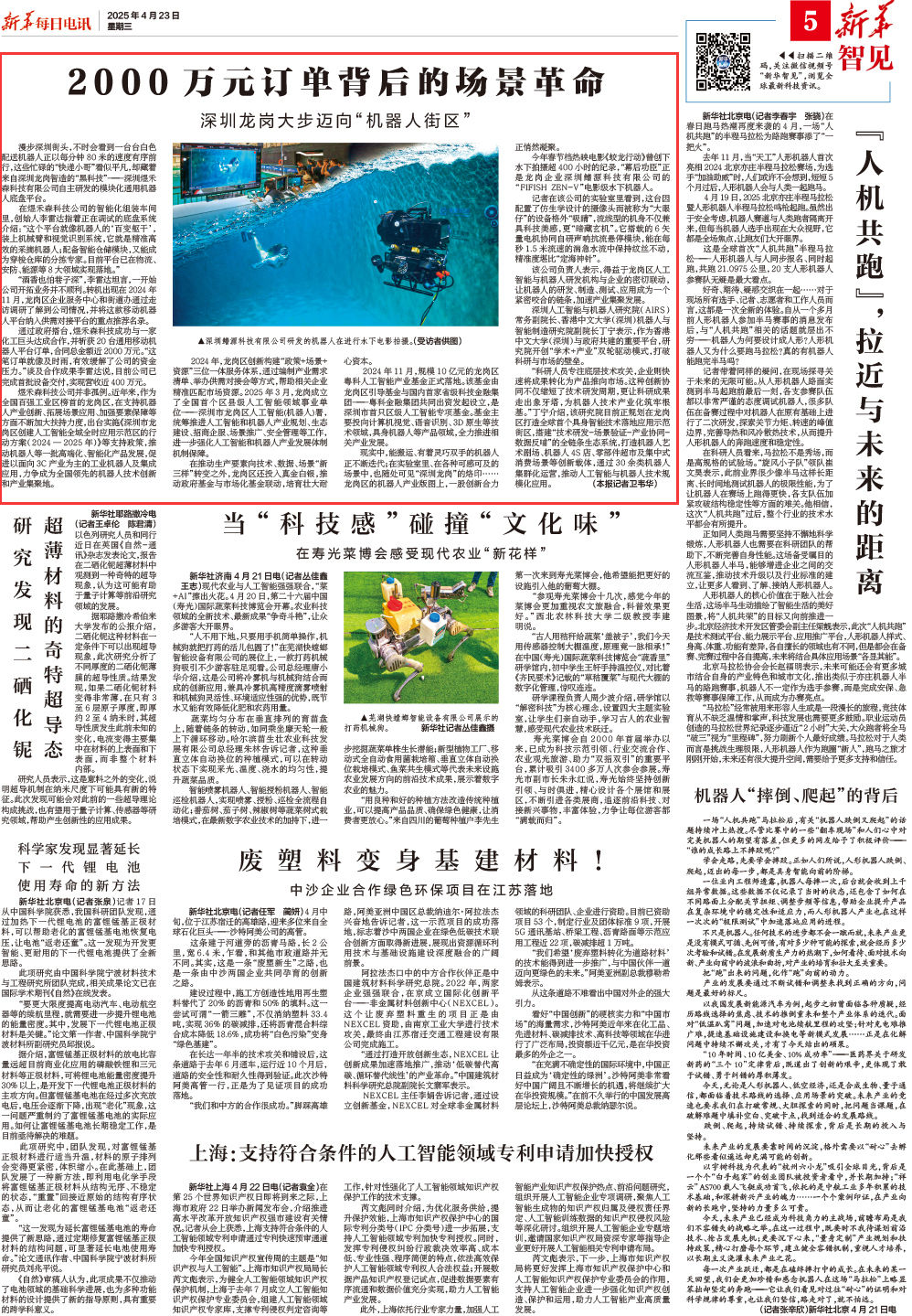 在煜禾森科技公司的智能化组装车间里,创始人李雷达指着正在调试的底盘系统介绍:“这个平台就像机器人的‘百变躯干’,装上机械臂和视觉识别系统,它就是精准高效的采摘机器人;配备智能仓储模块,又能成为穿梭仓库的分拣专家。目前平台已在物流、安防、能源等8大领域实现落地。”