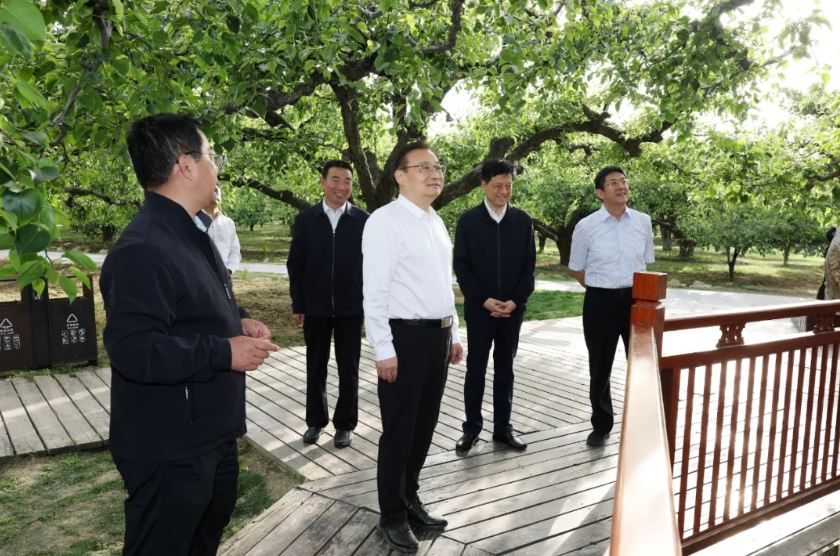 5月6日,省委书记梁言顺来到砀山县梨树王农文旅综合体,详细了解梨园提质改造、盘活闲置宅基地等情况。