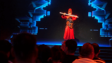 5月1日,在鄂尔多斯文化产业园景区沉浸式剧场,演员表演实景剧《凤鸣九曲》。新华社发(王正 摄)