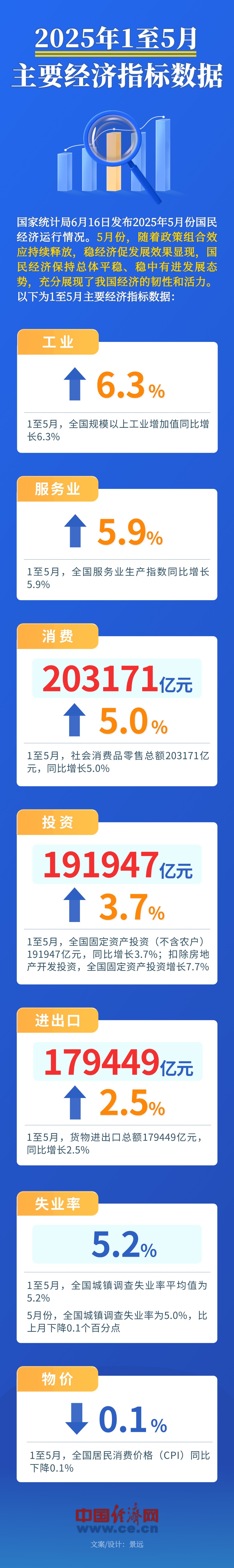 稳经济促发展效果显现!一图速览1至5月主要经济指标数据→