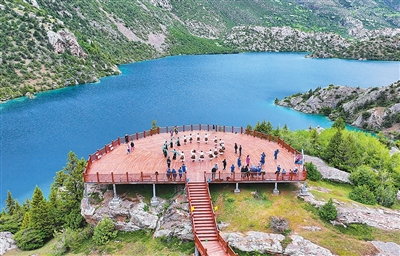 在昌都市边坝县边坝镇普玉一村,三色湖、祥格拉冰川、贡嘎蓝冰洞等自然景观,成为游客热门打卡点。“这里有冰川、湖泊、宗堡,欢迎各地朋友来边坝三色湖景区发发呆,享受一下慢生活。”边坝县文旅局党组书记仁增旺秀说。