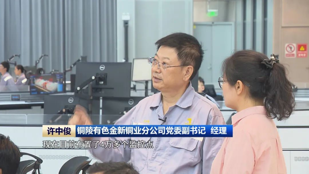 这里是铜陵有色绿色智能铜基新材料项目的智控大厅,在我身后的大屏上,每一道生产工序、每一台设备的运行状态都通过智能化平台实时呈现,传统印象中“高温轰鸣”的铜冶炼车间,如今已经转型成“一键智控”的现代化工厂。它不仅让生产效率提升1.5倍以上,而且让每一吨铜材的生产能耗降低了10%。