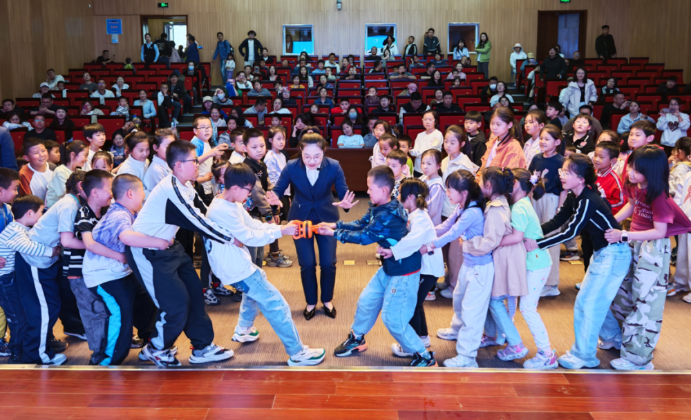 内蒙古科技馆的科学实验秀上,小观众们体验马德堡半球实验。(内蒙古科技馆供图)
