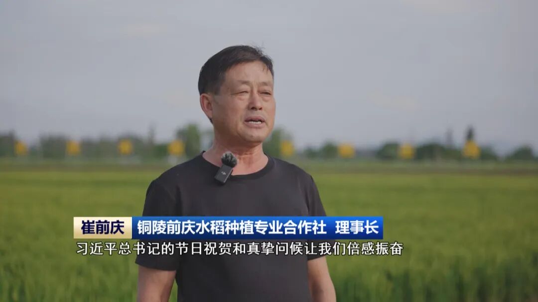 在我们农民自己的节日里,习近平总书记向我们表示问候,我们倍感温暖。今年我们克服了高温干旱等不利因素,取得了优质高产高效的效果,我们遵循总书记“多种粮 种好粮”的嘱托,为实现农业农村现代化,建设农业强国,作出自己应有的贡献。