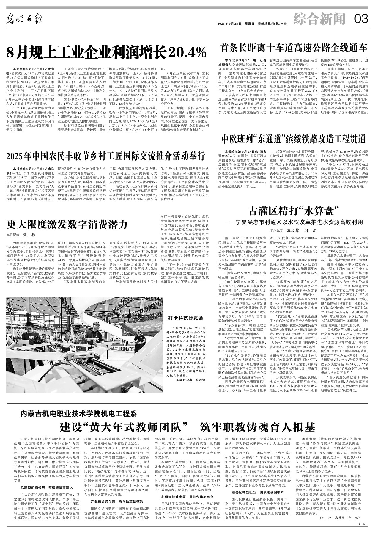 “1至8月,在宏观政策发力显效、全国统一大市场纵深推进,叠加去年同期低基数等多重因素作用下,规模以上工业企业利润实现增长。”国家统计局工业司首席统计师于卫宁指出。