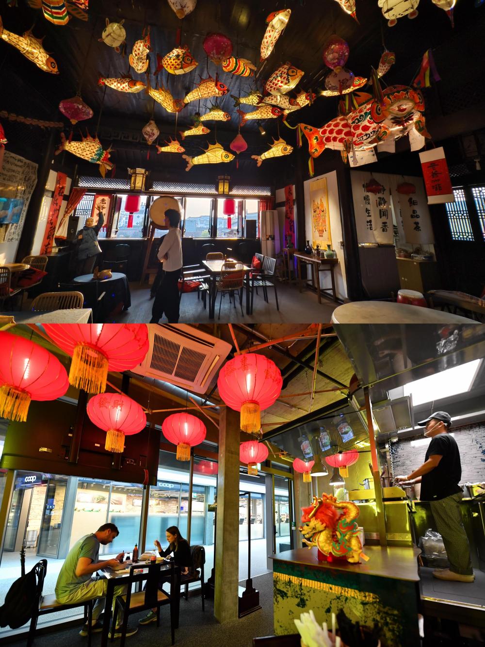上图为2025年3月18日,游客在安徽省黄山市歙县徽州古城的一家咖啡馆内游览(新华社记者 郭晨 摄);下图为2025年8月28日,游客在瑞士少女峰的中国面馆用餐(新华社记者 连漪 摄)。