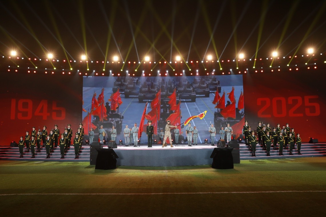 “哪怕只剩一个人,也要守住阵地!人在,阵地在!”这句回荡在舞台上的震耳壮语,正是“刘老庄连”战士用生命刻下的铮铮誓言。那面弹痕累累的“刘老庄连”战旗,始终在烽火硝烟中傲然挺立,如一把不屈的利剑,牢牢指向敌人的方向。