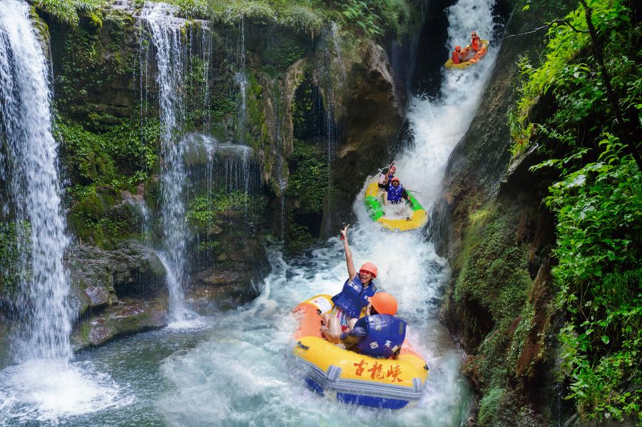 “清远简直是漂流爱好者的天堂。”在广州生活的杨星,周末去清远古龙峡体验了一次漂流。40分钟的体验之旅中,她经历了高速俯冲的失重快感,穿越原始森林包裹的幽深峡谷,最终在平缓水湾与素不相识的“战友们”打了一场酣畅淋漓的水仗。