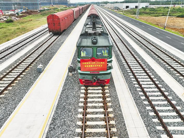 中安在线、中安新闻客户端讯 9月22日,首列中欧班列(合肥)JSQ笼车新能源整车专列,满载290台“合肥造”新能源汽车从合肥北城铁路综合物流园下塘铁路专用线缓缓启程,发运目的地为阿拉木图和塔什干,运输时间分别为16天和22天。