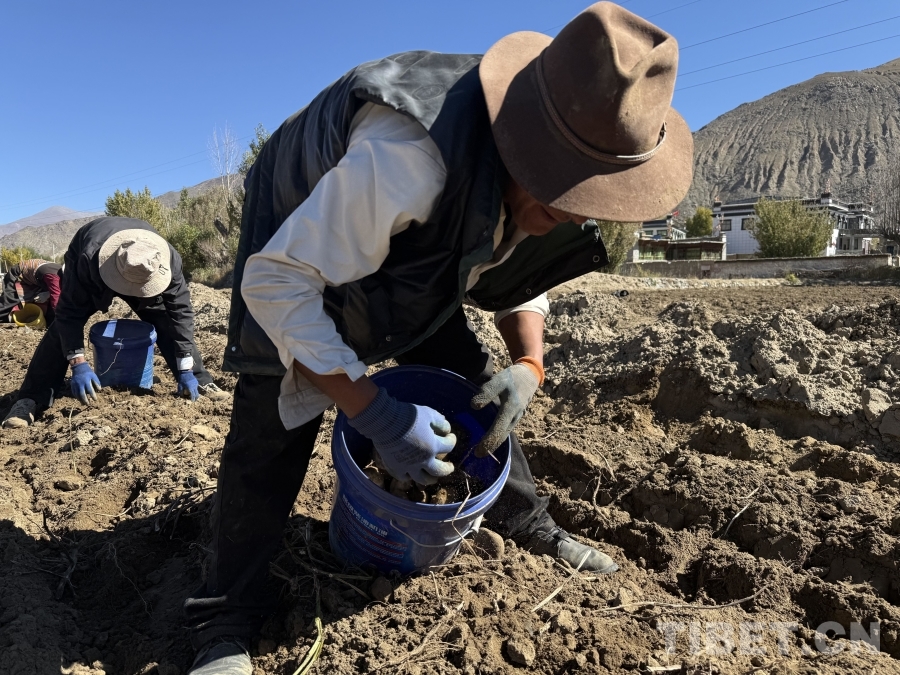 图为南木林县艾玛乡山巴村村民正在收获土豆