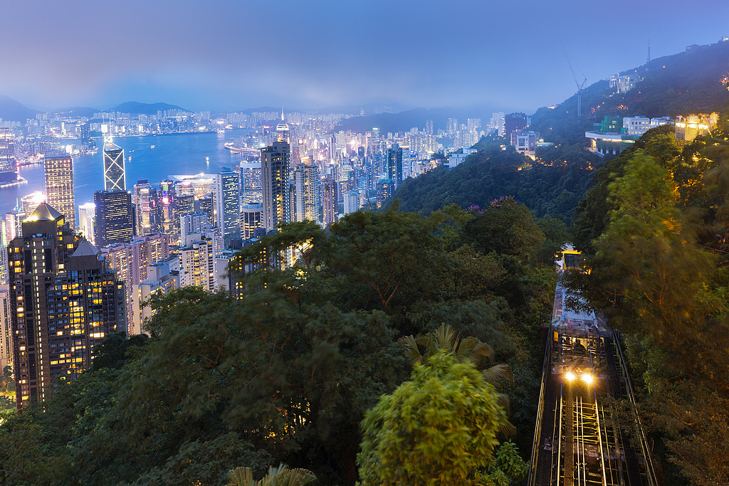 维多利亚港与九龙半岛的万家灯火如银河泻地