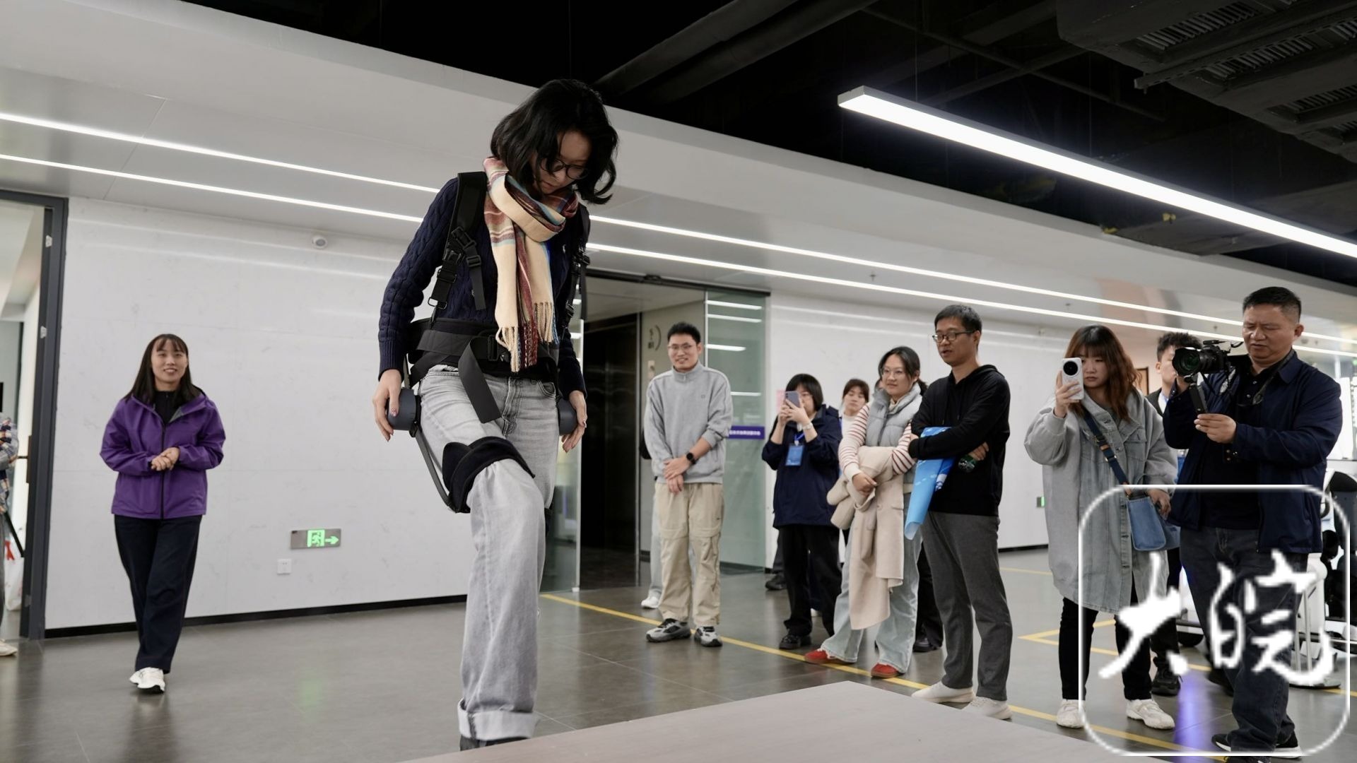 系好腿带、扣紧腰带,穿上“机械护膝”爬楼梯,竟然毫不费力。11月11日上午,“皖美十四五 再启新征程”2025网聚美好安徽网络主题活动来到江淮前沿技术协同创新中心,在康养机器人展区,采访团成员穿戴“无源双髋助力机器人”,有了这一科技“外挂”,大家感叹“还能多走一公里!”