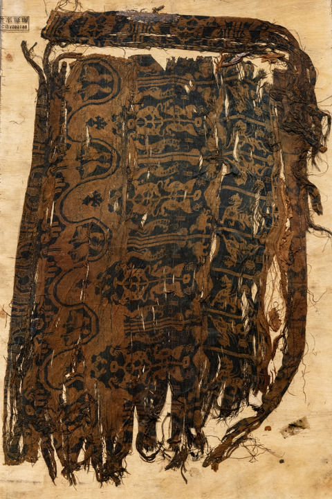 这是阿里故如甲木墓地出土的汉代“王侯鸟兽纹锦”,上有“宜王侯”字样。(受访者供图)