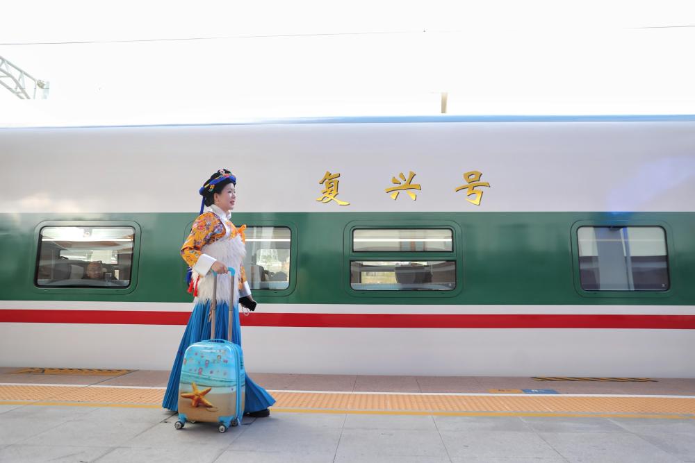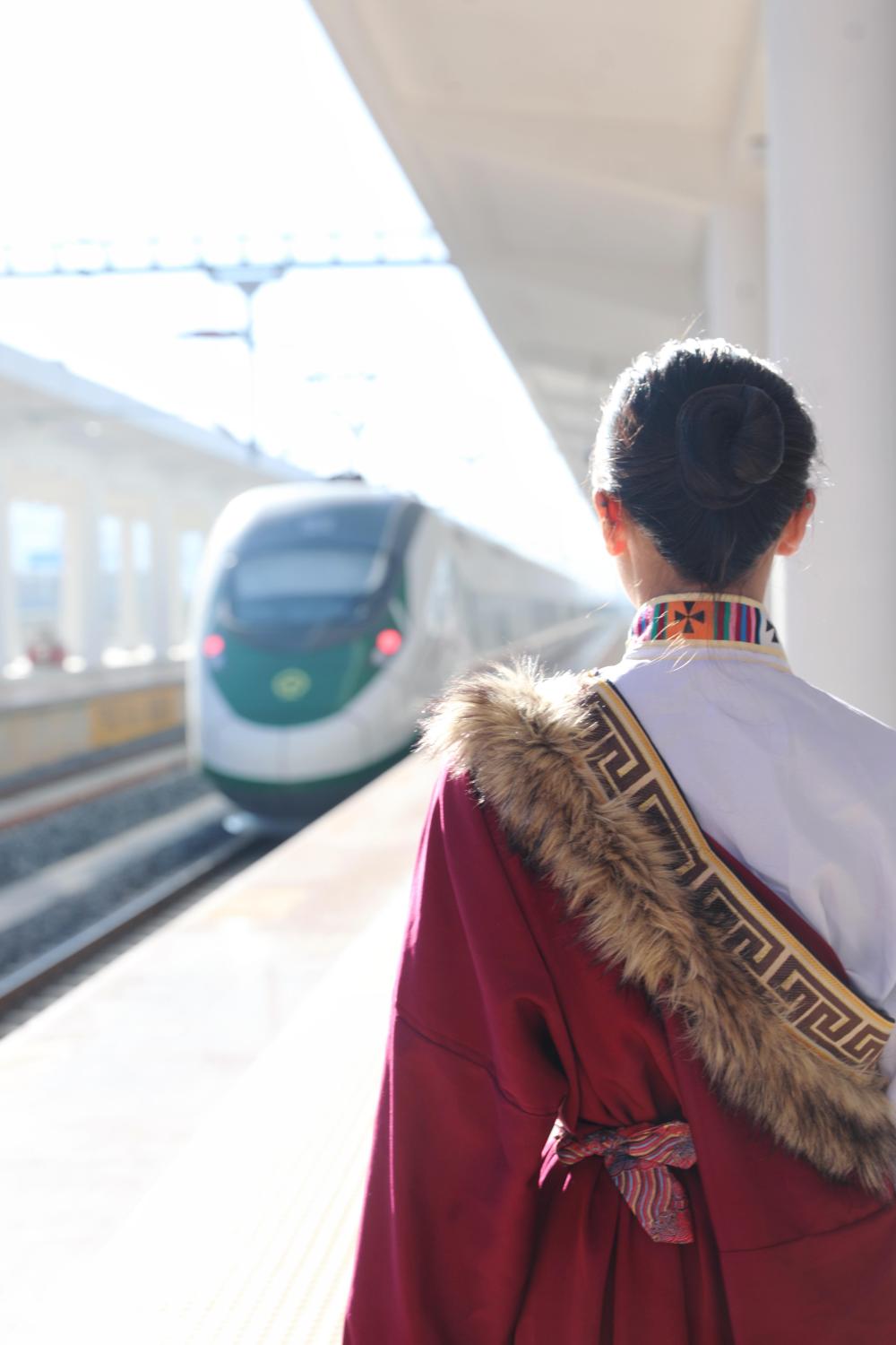 11月20日,普米族旅客卓玛次尔在云南香格里拉站乘车前往丽江探亲。