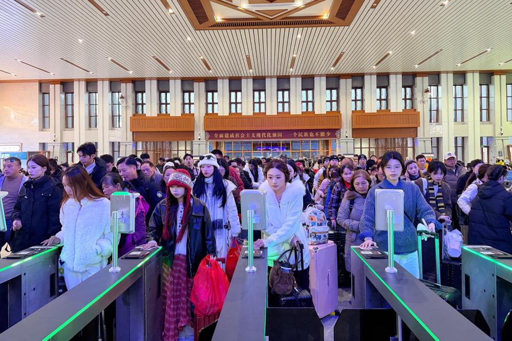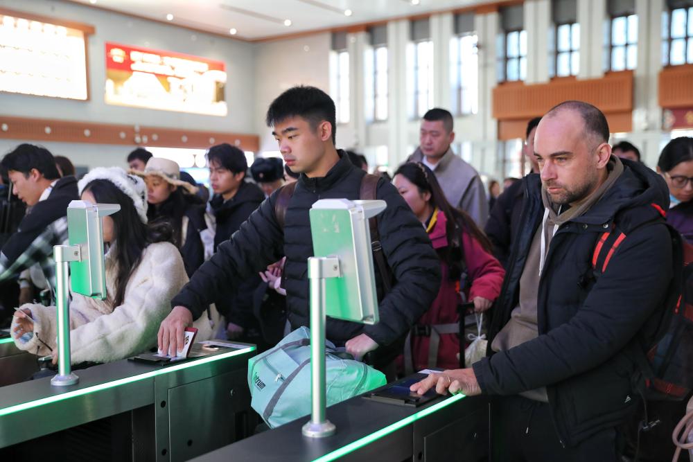 11月18日,旅客在云南香格里拉站检票乘车。