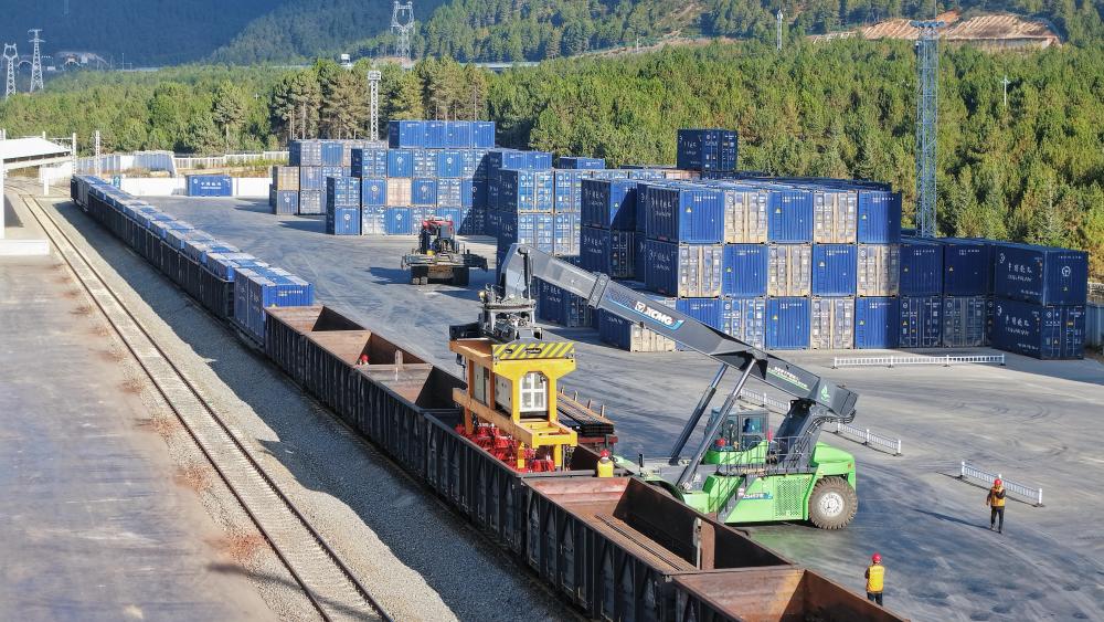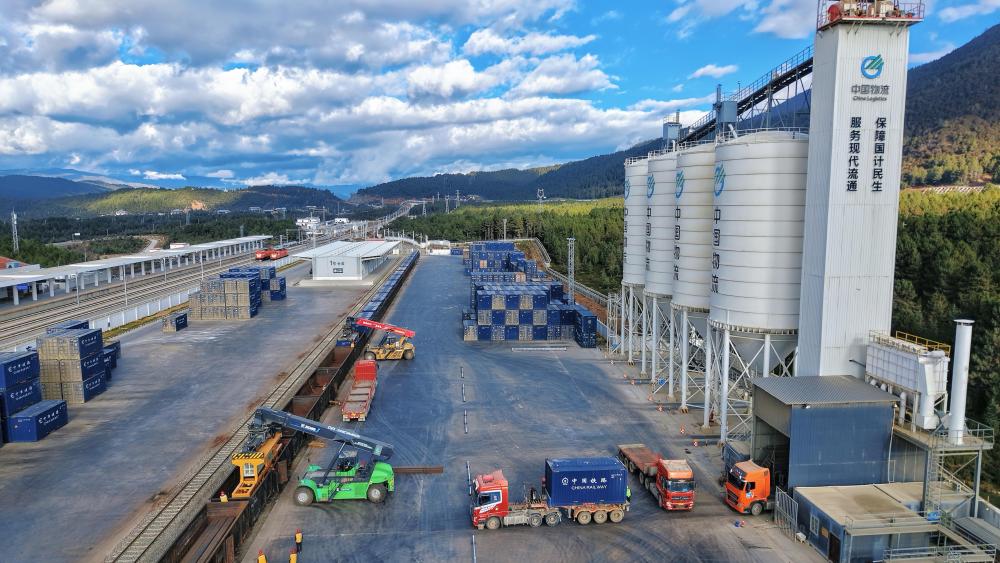 这是11月21日拍摄的云南迪庆藏族自治州小中甸站货场(无人机照片)。
