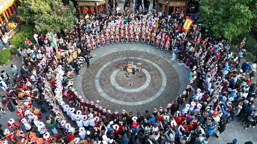 2024年11月30日,侗族群众在贵州黔东南州黎平县肇兴侗寨进行文艺表演。新华社发(王纯亮摄)
