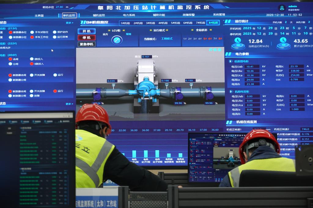 12月30日,安徽省阜阳市颍泉区引江济淮二期工程阜阳北加压站内,操作员正在监控设施运转情况。新华社记者 赵金正 摄
