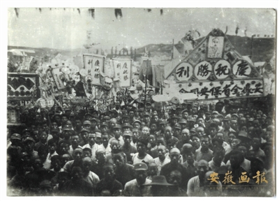 1945年,安徽各界庆祝抗战胜利场景