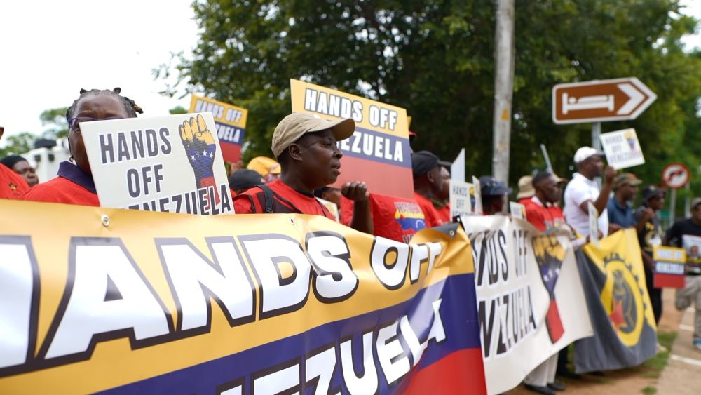 当地时间8日中午,南非民众在位于行政首都比勒陀利亚的美国驻南非大使馆前举行集会,高喊“停止干涉委内瑞拉”等口号,抗议美国对委内瑞拉实施军事打击。