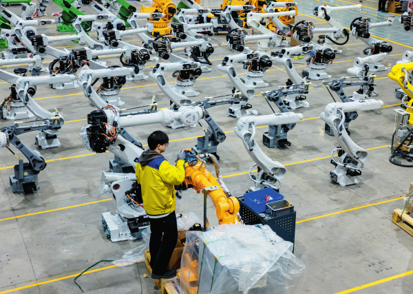 埃夫特智能机器人股份有限公司工人在制造车间装配工业机器人(2025 年 11 月 21 日摄)新华社发(赵献富摄)