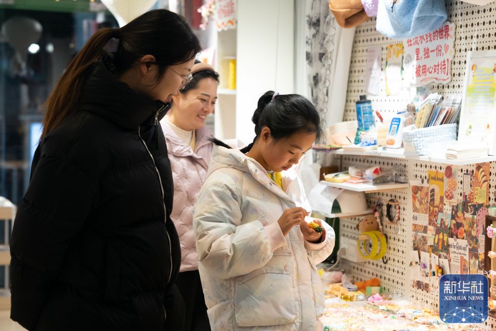 ↑ 1月10日,游客在合肥市新粮仓商业合集一家文创店内选购商品。