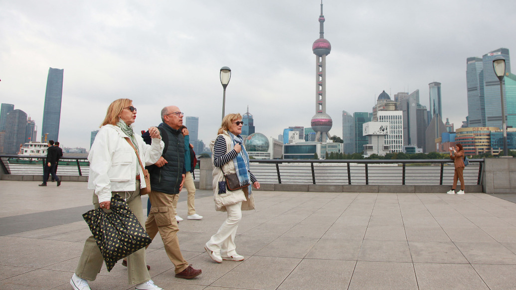 2025年11月5日,上海外滩,外国游客正在漫步。 视觉中国 图