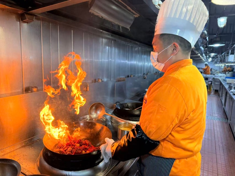 稳定的虾源不仅让养殖户增收,更让餐饮企业底气十足。“今年团年宴主打龙虾菜品。光除夕那天就预订了一百多桌小龙虾团年宴,单是小龙虾就备了一千多斤。”董兴华忙得不可开交。