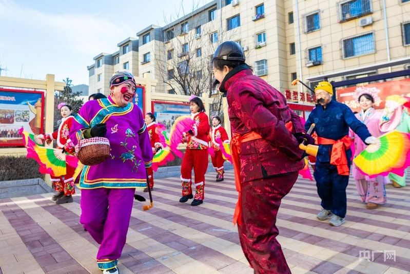 社区各族居民在小区广场上扭秧歌(央广网发丁根厚 摄)
