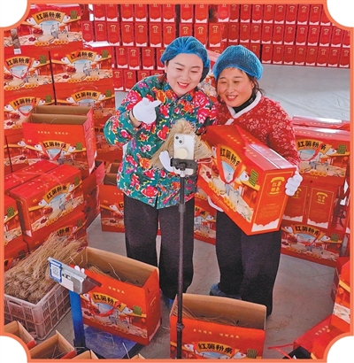 河南省新乡市原阳县路寨乡李庄村村民在电商平台直播带货。