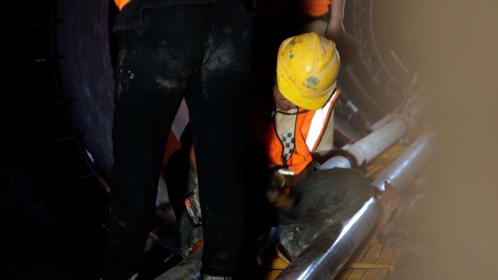 在40米深的全海底作业面,项目三圆咬合顶管试验施工正在进行,为下一步工程的全面开展提供了有力支撑。