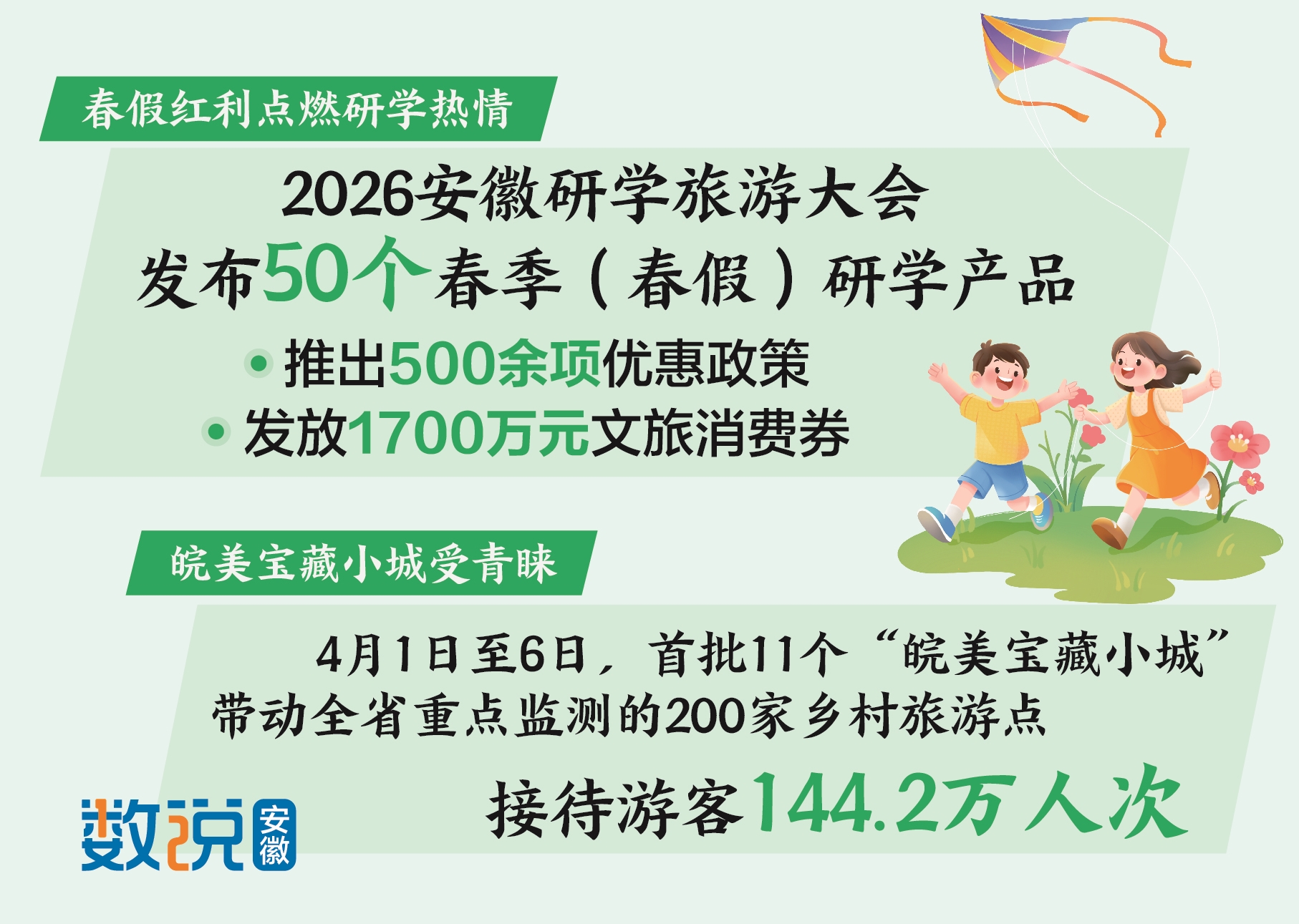 休闲度假踏青人气旺。春和景明,繁花似锦,市民和游客纷纷踏青赏花,疗愈身心。黟县国际乡村旅游度假区油菜花海将黛瓦白墙浸染成明黄的海洋,吸引游客15.9万人次。亳州华佗百草园迎来游客5万人次,识百草、学药理、体验五禽戏,领略传统中医文化独特智慧。铜陵永泉小镇主打“无忧度假”,推出怀旧游戏、年代换装、乡愁演艺,吸引游客8.2万人次。