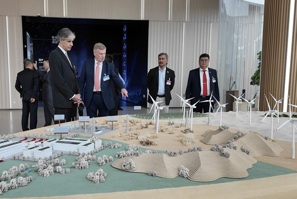 在中山明阳智慧能源集团股份公司,香港瑞士商会主席盛勋文兴趣浓厚,认真观摩能源产品与技术模型。该企业深耕全球风电及新能源领域,积极推动国际供应链战略合作。盛勋文谈及此前与家人到访中山,已领略其人文自然之美,此次参访更直观感受到当地优良的营商环境与智能制造实力,认为瑞士和中国在可再生能源领域合作空间广阔。