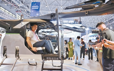 “这是一款可量产的飞行汽车。”展台工作人员一边演示一边介绍,这款产品采用车载自动分合机构,用户可通过一键操作在5分钟内实现陆行体与飞行体的自动分离或结合,“别看它是个庞然大物,动动手,在APP上就能完成操作。”