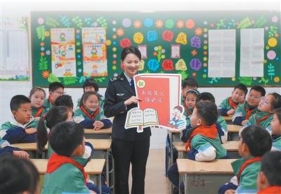 安徽马鞍山市和县公安局民警向孩子们讲解安全知识。