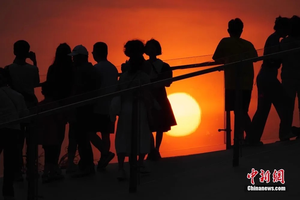 游客在海口湾云洞图书馆欣赏落日美景。凌楠 摄(资料图)