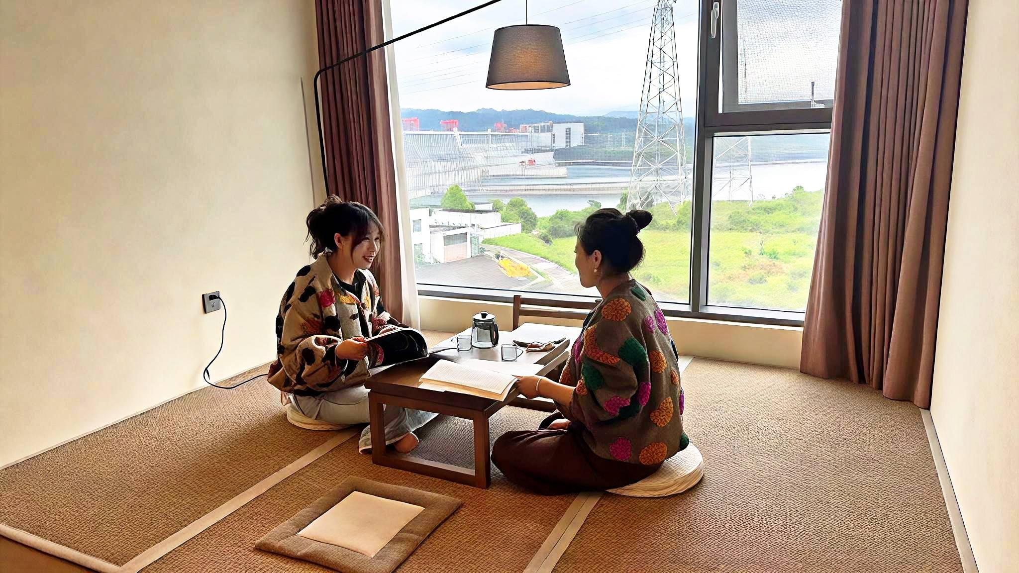 “九间房”每个门店都各有特色,但宜昌长江边的“九间房”是王丽付出设计精力最多、在硬件和基础设施上投入最大的分店。她说,“这是独一无二的生态资源,必须要好好利用起来。这里90%的房间可通过落地窗观赏三峡大坝和浩浩江景。”