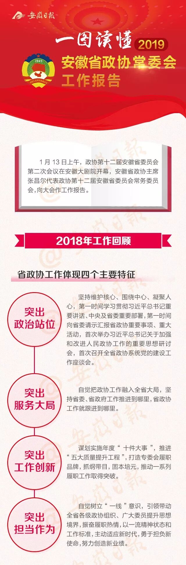 1月13日上午9时,中国人民政治协商会议第十二届安徽省委员会第二次会议在安徽大剧院隆重开幕,省政协主席张昌尔作中国人民政治协商会议安徽省委员会常务委员会工作报告。