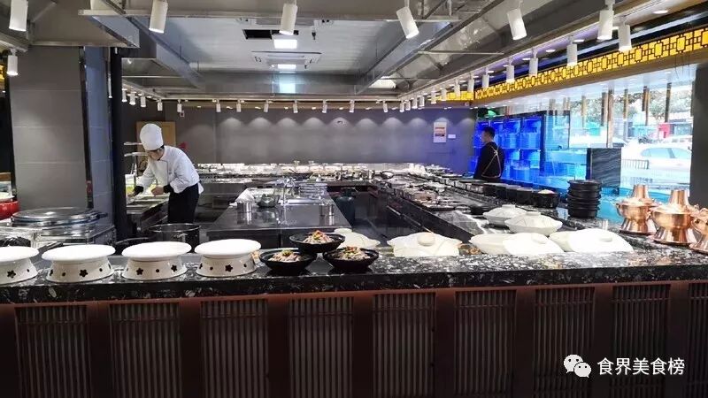 中国餐饮的起源是前灶后厅,像许多包子铺子一样,门口灶笼热腾腾的雾气吸引了食客前来,点餐后再到后厅入座。后来,大小酒店都改成了前堂后灶,前面大堂是整洁了,但却失去了锅灶的火红。这次,桐国秀水一反常态,采用了前灶后厅方式,迎门就是色彩缤纷香气扑鼻的明厨亮灶,长方形的四围明档,抢眼球,抢嗅觉,既方便了顾客选菜点菜,又使顾客看到了现场操作,增加了一份好奇和信任。